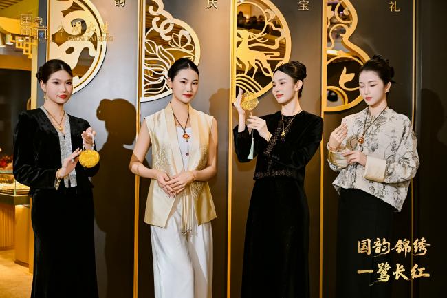 与此同时,发布会的展示环节更将此次发布的金品——国韵国瓷·霁红系列的美展现得淋漓尽致。周大生×国家宝藏品牌联合高端时装品牌EP雅莹,打造以锦绣为主题的雅奢珠宝与服饰大秀,演绎中式雅奢之美。模特们身着华服,佩戴着国韵国瓷·霁红系列新品,将传统文化与现代时尚完美融合,为观众带来一场视觉与心灵的双重盛宴。