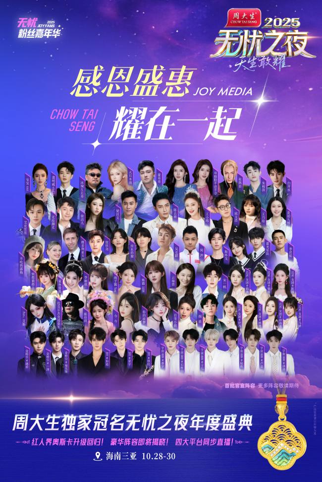 时光见证真心,珠宝承载誓言。周大生双十一感恩盛惠,以真挚回馈传递心意,将明星达人在无忧之夜2025盛典上的璀璨光芒,融入到日常生活中,为消费者带来众多心意珠宝和惊喜好礼。借此感恩盛惠之际,周大生珠宝诚邀各位莅临全国各大线下门店,解锁更多精彩活动和惊喜好礼,共赴一场关于爱与感恩的华美盛宴。