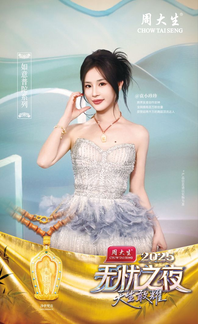 值此感恩盛惠之际,周大生不仅精心筹备了多重惊喜礼遇,更将无忧之夜亮相的明星达人同款珠宝化作心意之礼,倾情献予广大消费者,传递品牌温度与真挚感恩。江山美如画,福韵耀古今。周大生福韵国宝系列“福禄荣华”,采用青花釉珐琅的匠心技艺,诠释东方福韵,传递美好祝福。“福禄荣华”黄金点钻的设计流光溢彩,尽显佩戴者的自信锋芒。将“福禄荣华”佩戴于颈间,荣华之美便悄然绽放,在如诗如画的光影中,感受东方雅韵与珠宝风华的完美交融。