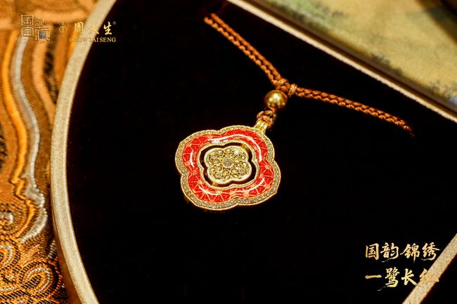 福禄生花挂坠以立体饱满的葫芦造型呈现,周身以钻石镶嵌工艺打造“富贵环腰”的华美效果。产品同样运用“云锦织金”工艺,织就传统吉祥花纹。这不仅是一件精美金饰,更是随身携带的幸运符,寓意佑护佩戴者人旺财旺,富贵安康。