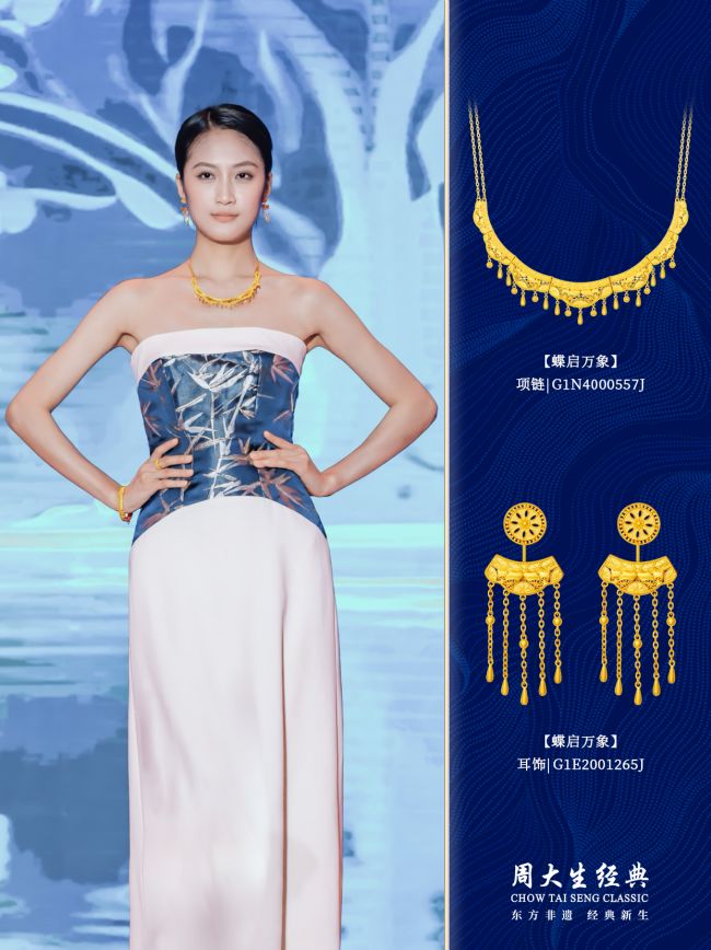 在为消费者带来诸多实惠与惊喜的同时,周大生经典此次活动的主推产品也承载着对新年的美好祝福。其中,衣脉金承系列“蝶启万象”,设计灵感源于苗族“蝴蝶妈妈”传说,象征着生命起源与自然循环的神圣力量。“蝶启万象”的蝴蝶纹样繁复精美,不仅是对生命本源的致敬,更象征着个体不断突破自我,追寻广阔世界的勇气。