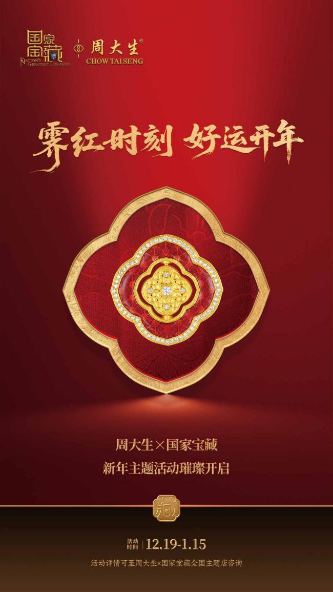 新元肇始,天地焕然。周大生×国家宝藏谨以这凝聚千年智慧与祥瑞祝福的霁红系列,致敬永续的东方美学,并于璀璨金辉与霁红色彩的交融中,与广大消费者共启一个充满文化自信与温情厚意的崭新年华。
