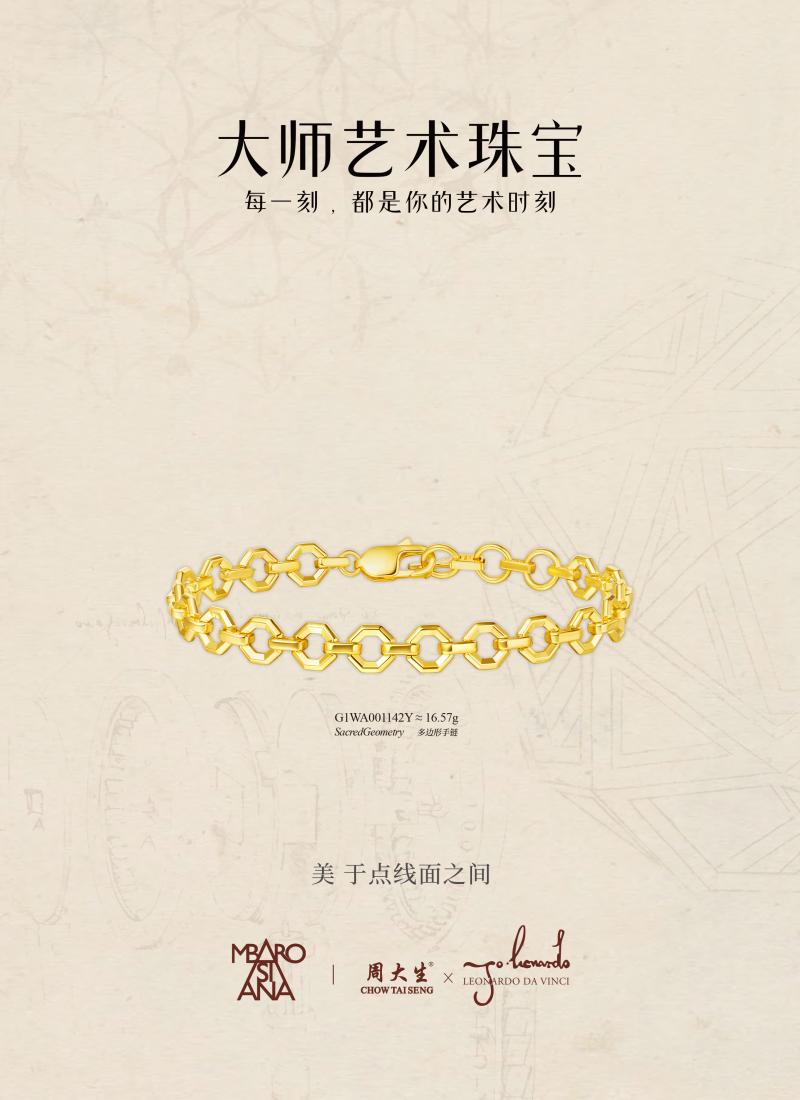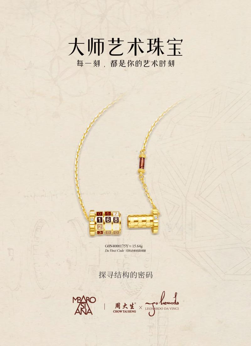 作为文艺复兴时期的全才巨匠,达芬奇不仅在绘画领域留下传世经典,更在机械结构、数学比例、生命哲学中留下无数超前思考。他笔下的《大西洋古抄本》《神圣比例》等手稿,跨越数百年依旧闪耀智慧光芒,也成为大师艺术珠宝达芬奇密码系列最珍贵的创作蓝本。周大生以正版授权为依托,深度挖掘大师精神内核,拒绝流于表面的符号复刻,用可转动、可组合、可叠戴的现代设计,让国际艺术珠宝真正走进日常。